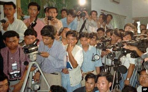 Delphine Halgand, US director for the organization, told reporters in Washington that Cambodian journalists face arrest, persecution and murder, in an environment of impunity. No perpetrators have been brought to justice for the killings of dozens of Cambodian journalists since the 1990s, she noted.