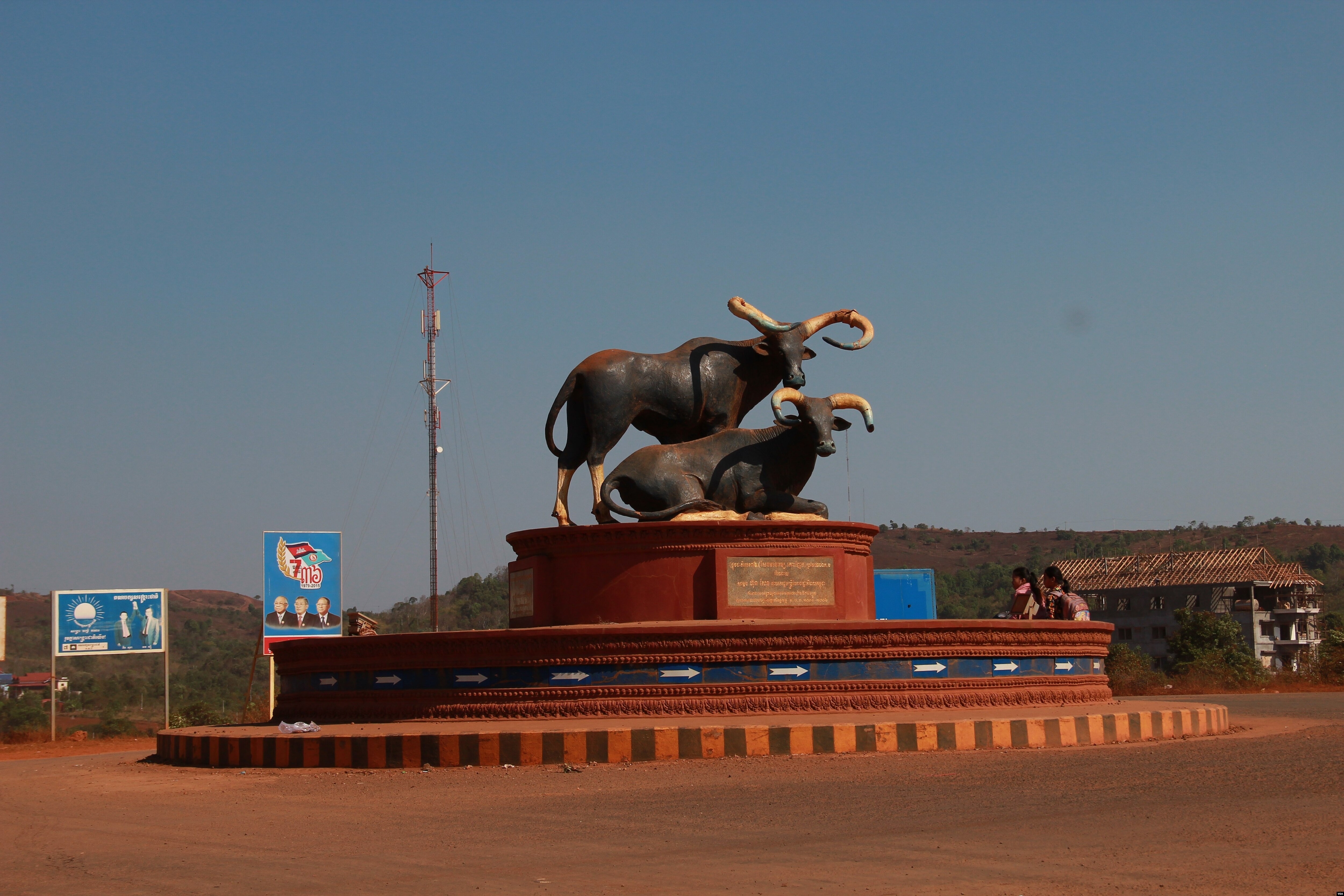 Kouprey statue, a symbol of Mondulkiri province, is located in Sen Monorom provincial capital on March 11, 2015 in Mondulkiri province. (Nov Povleakhena/VOA Khmer)National Road 76, from Sen Monorom to Koh Nhek district, is currently under construction in Mondulkiri province. (Nov Povleakhena/VOA Khmer)