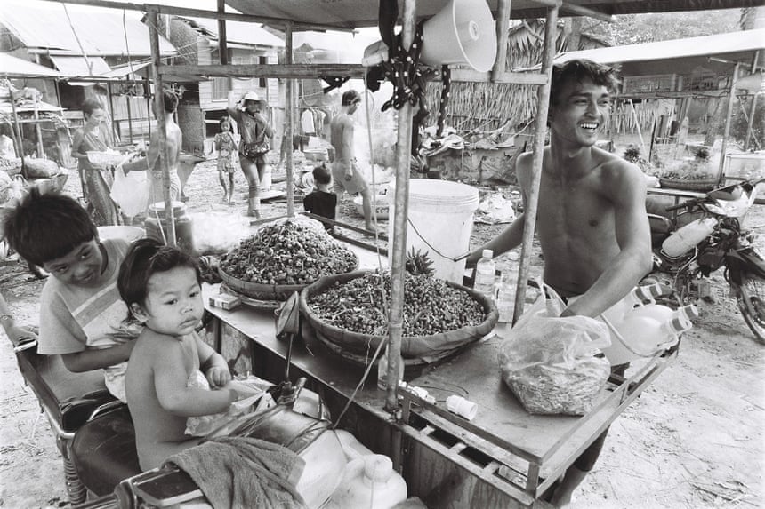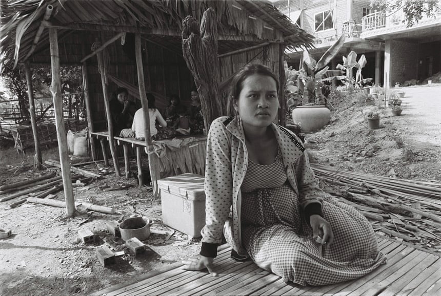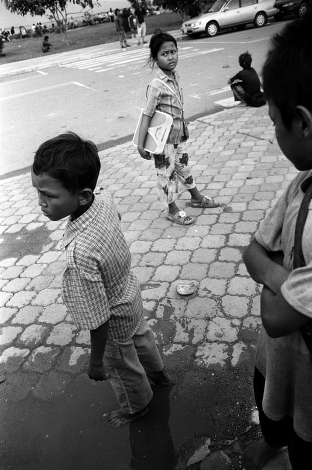 | Channa, 12, sets out with her bathroom scales, watched by her brother Pov, nine, and mother Rihorn, in Phnom Penh, 2005. All photographs: Nick Danziger/NB Pictures |