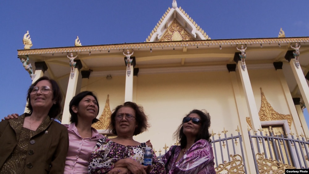 សាស្ត្រាចារ្យ នូវ លក្ខិណា និងស្ត្រីបីនាក់នៃខ្សែភាពយន្តឯកសារ "Daze of Justice" នៅវត្តព្រះពុទ្ធមួយកន្លែង។ (រូបភាពផ្តល់ឲ្យលោក Michael Siv)